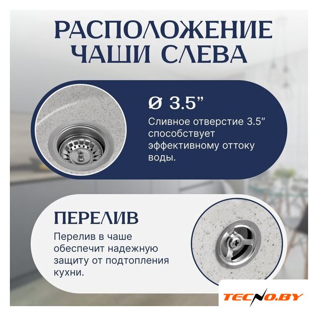 | Диаметр сливного отверстия | 3.5" |