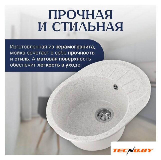 врезная на столешницу, искусственный камень, фактура: матовая, размеры: 47.5x73.5 см, глубина чаши: 17.5 см, в шкаф шириной от 50 см