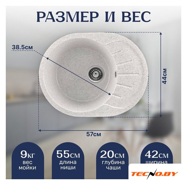 врезная на столешницу, искусственный камень, размеры: 44x57 см