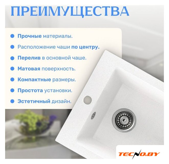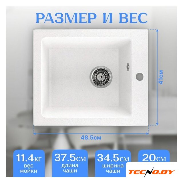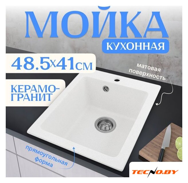 врезная на столешницу, искусственный камень, фактура: матовая, размеры: 42x49 см, глубина чаши: 17 см, в шкаф шириной от 50 см