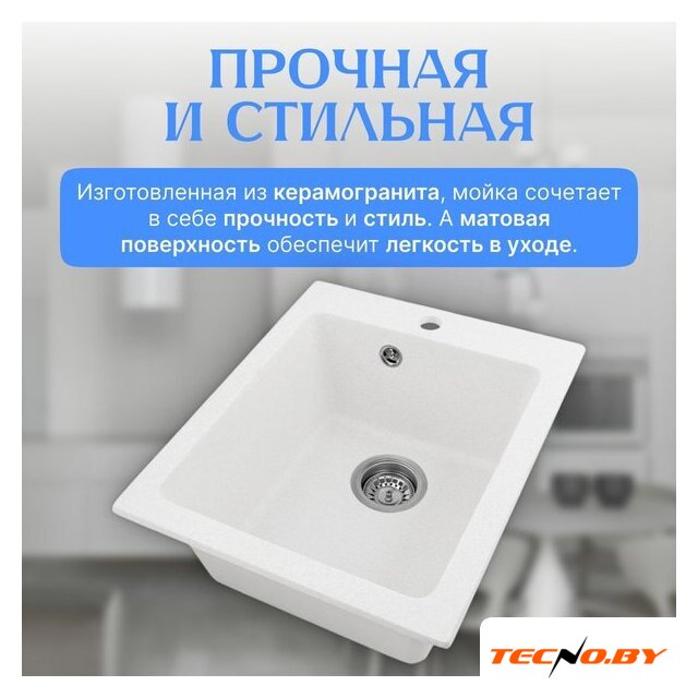врезная на столешницу, искусственный камень, фактура: матовая, размеры: 51.5x51.5 см, глубина чаши: 21.3 см, в шкаф шириной от 60 см