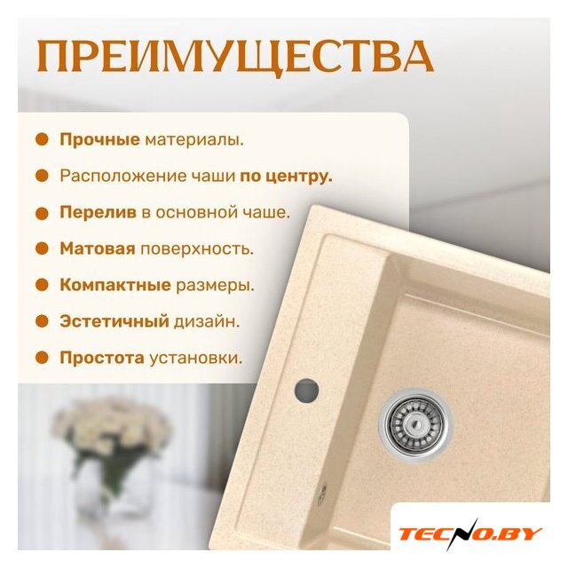 врезная на столешницу, искусственный камень, размеры: 61.8x47.7 см, глубина чаши: 18 см, в шкаф шириной от 50 см