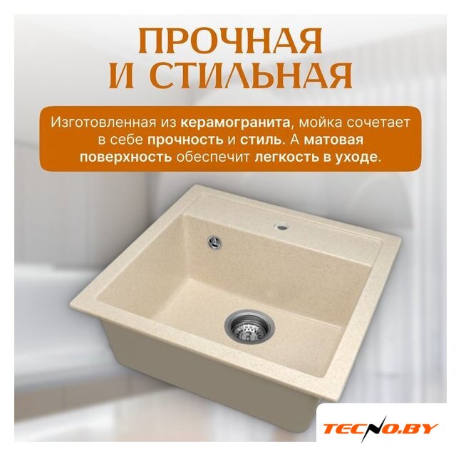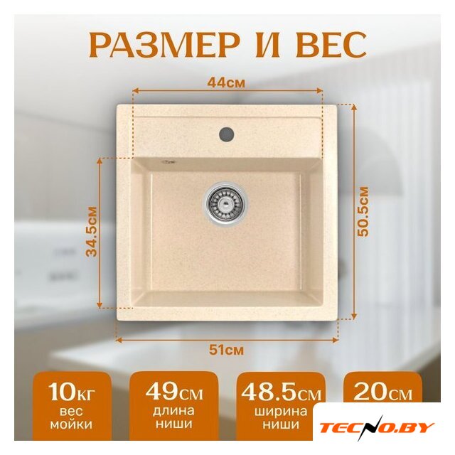 врезная на столешницу, искусственный камень, размеры: 50.5x51 см