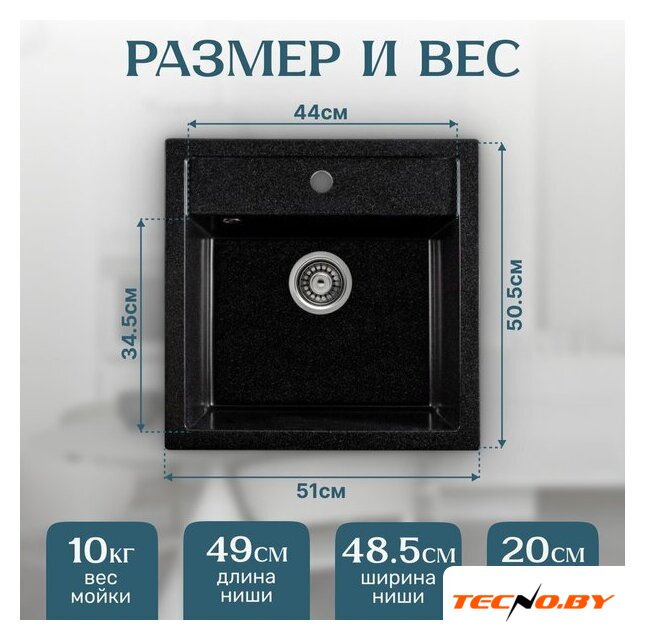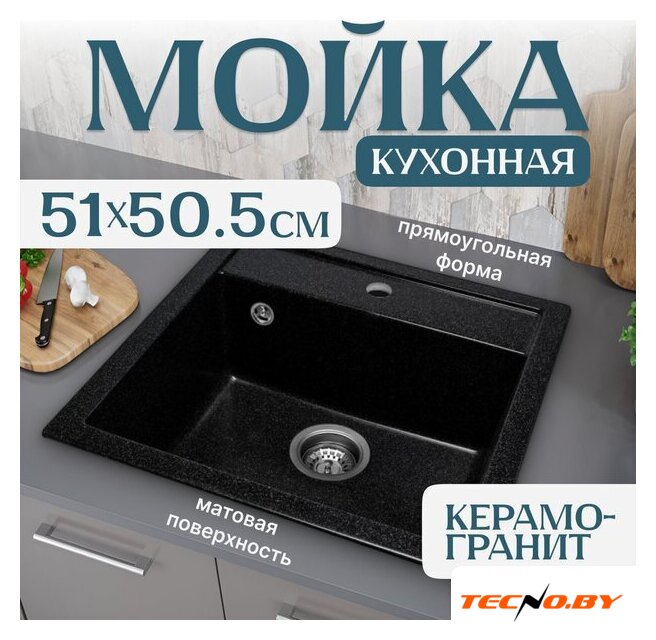 врезная на столешницу, искусственный камень, размеры: 51x55.5 см, глубина чаши: 19 см, в шкаф шириной от 60 см