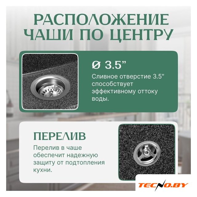 Диаметр сливного отверстия | 3.5" |