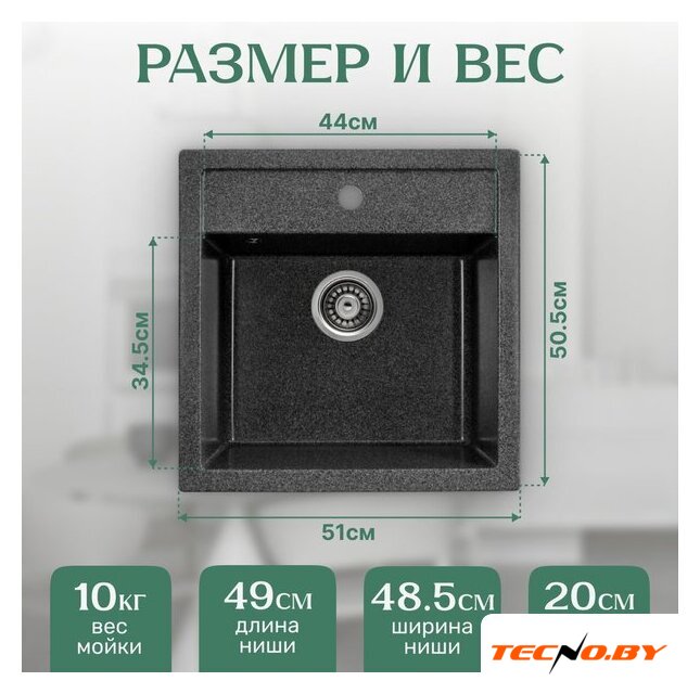 врезная на столешницу, нержавеющая сталь, фактура: сатин, размеры: 48x43 см, глубина чаши: 17.5 см, в шкаф шириной от 45 см