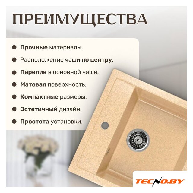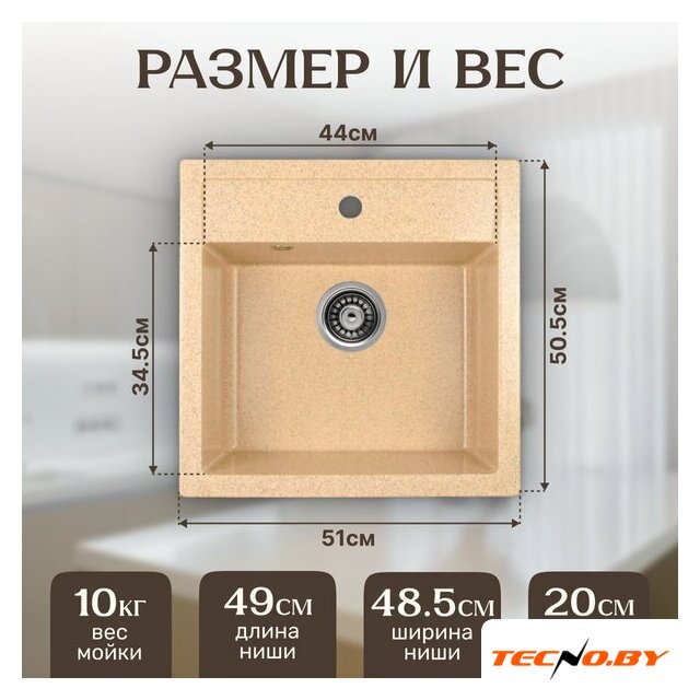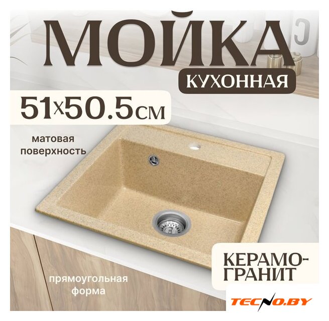 врезная на столешницу, искусственный камень, размеры: 50.5x51 см