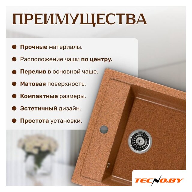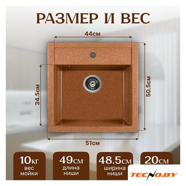 врезная на столешницу, искусственный камень, фактура: матовая, размеры: 44x57 см, глубина чаши: 20 см