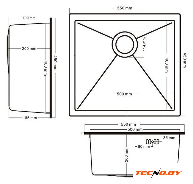 врезная под столешницу, нержавеющая сталь, размеры: 55x45 см