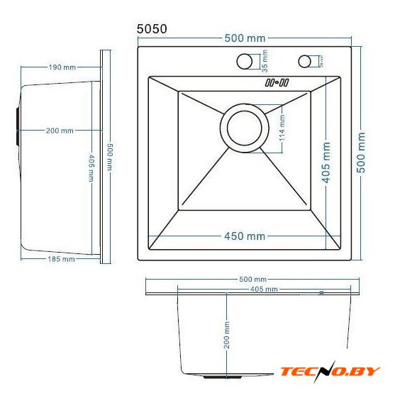 врезная на столешницу, нержавеющая сталь, размеры: 50x50 см