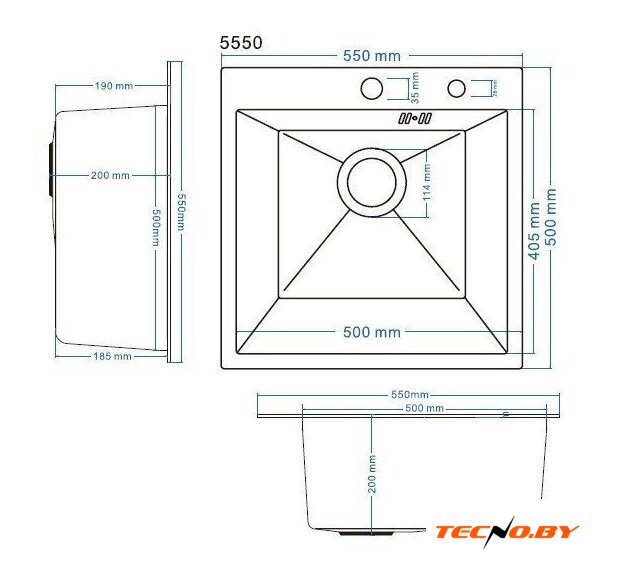 врезная на столешницу, нержавеющая сталь, фактура: матовая, размеры: 50x50 см, глубина чаши: 20 см, в шкаф шириной от 50 см