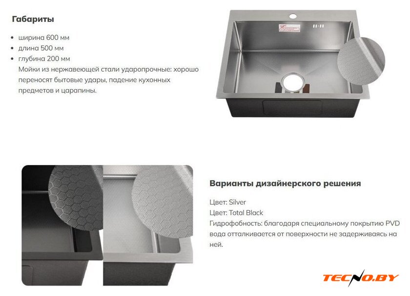врезная на столешницу, нержавеющая сталь, размеры: 41.5x48 см, глубина чаши: 18 см