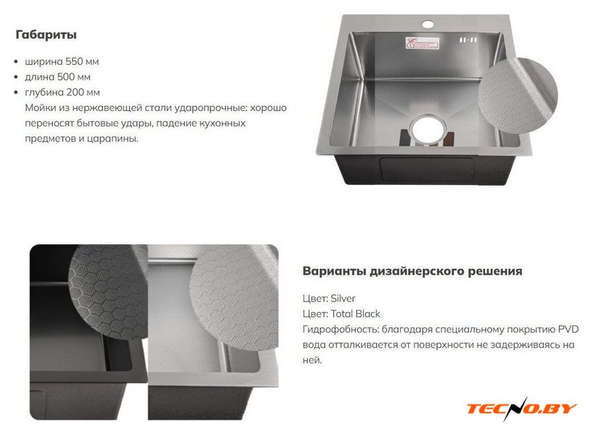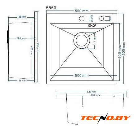 врезная на столешницу, нержавеющая сталь, фактура: сатин, размеры: 55x50 см, глубина чаши: 22 см