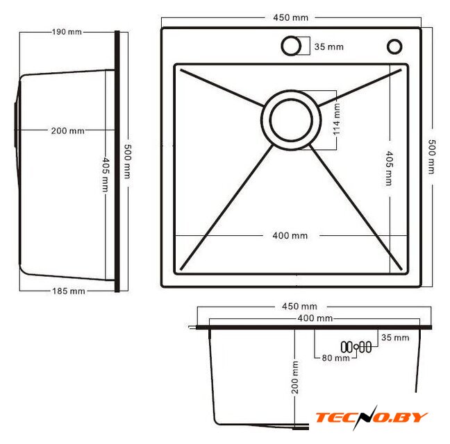 врезная на столешницу, нержавеющая сталь, фактура: матовая, размеры: 45x50 см, глубина чаши: 20 см
