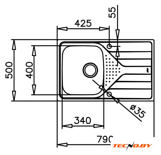 врезная под столешницу, нержавеющая сталь, фактура: матовая, размеры: 55x45 см, глубина чаши: 19 см