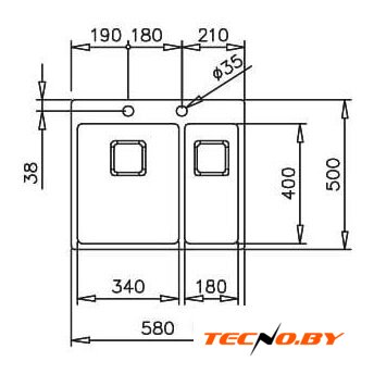 врезная на столешницу/врезная под столешницу, керамика, размеры: 55.6x45.6 см, глубина чаши: 20 см, в шкаф шириной от 60 см
