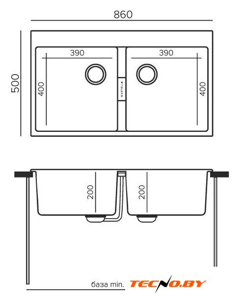 врезная на столешницу, искусственный камень, размеры: 86x50 см, глубина чаши: 20.5 см, в шкаф шириной от 90 см