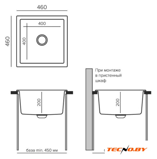 врезная под столешницу, нержавеющая сталь, фактура: матовая, размеры: 45x45 см, глубина чаши: 20 см