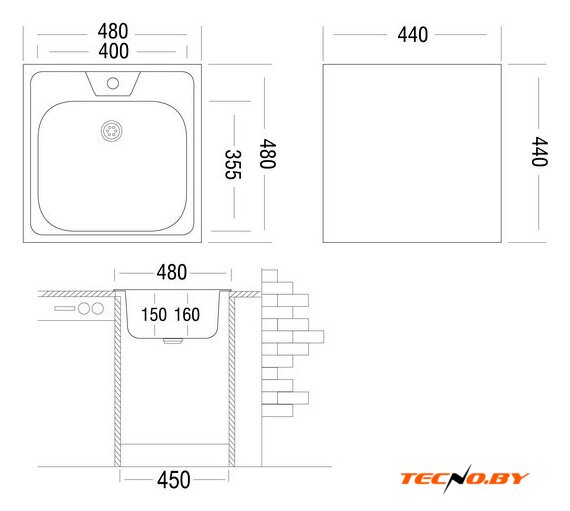 врезная на столешницу, нержавеющая сталь, размеры: 48x48 см, в шкаф 45 см