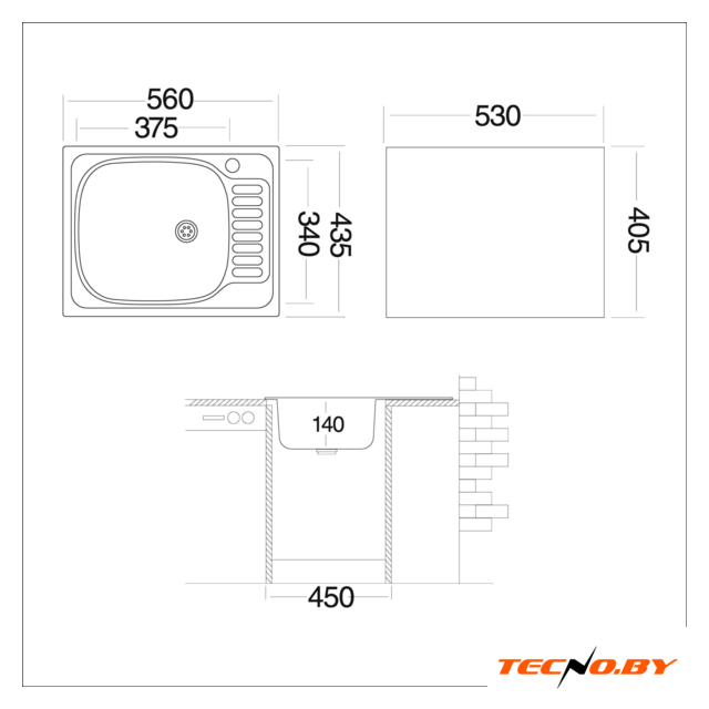 врезная на столешницу, нержавеющая сталь, фактура: матовая, размеры: 50x50 см, глубина чаши: 14 см, в шкаф шириной от 50 см