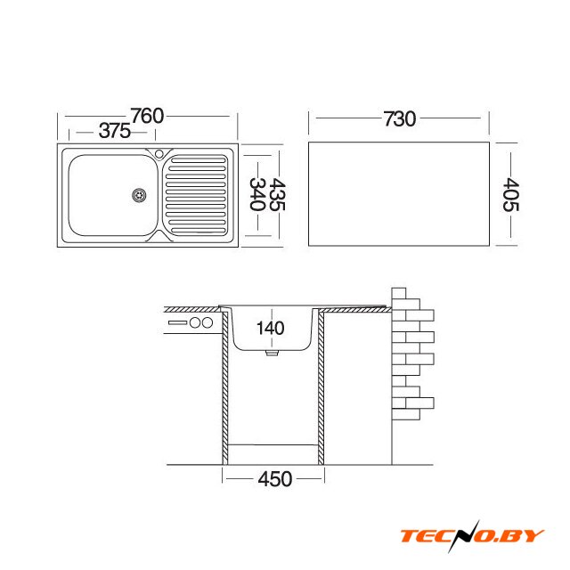 врезная на столешницу, нержавеющая сталь, размеры: 76x43.5 см, в шкаф 45 см