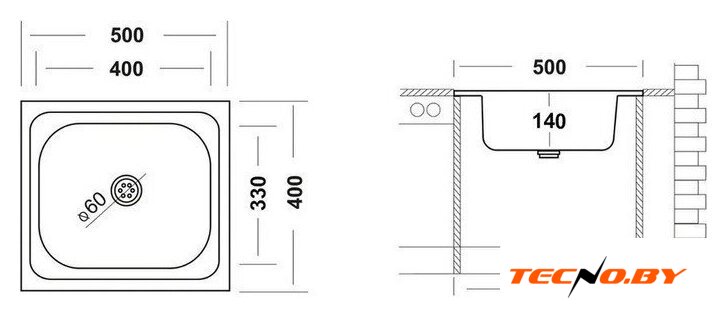 врезная на столешницу, нержавеющая сталь, фактура: сатин, размеры: 50x40 см, глубина чаши: 16 см