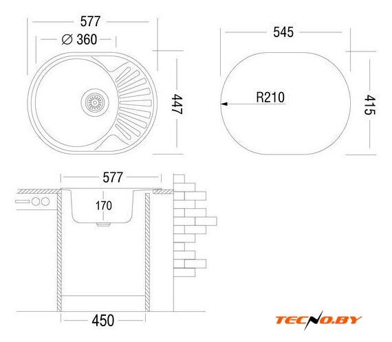 врезная на столешницу, нержавеющая сталь, фактура: матовая, размеры: 57.7x44.7 см, глубина чаши: 17 см, в шкаф шириной от 45 см