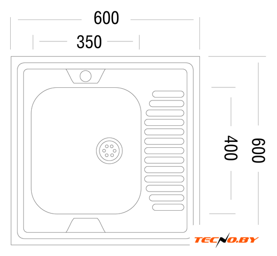 накладная, нержавеющая сталь, размеры: 60x60 см, в шкаф 60 см
