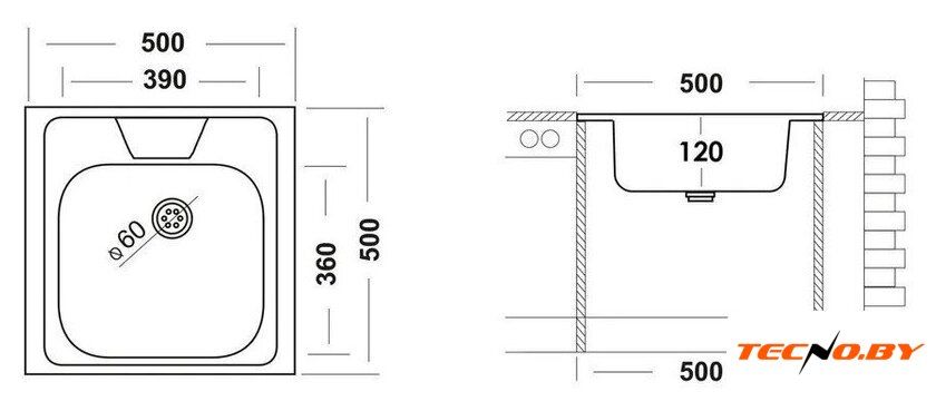 врезная на столешницу, нержавеющая сталь, фактура: сатин, размеры: 50x40 см, глубина чаши: 16 см