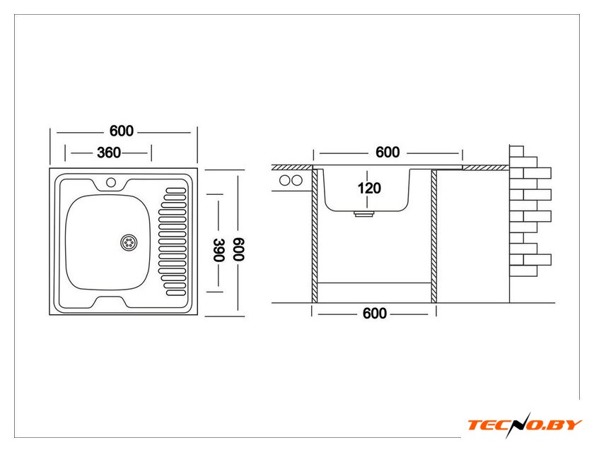 врезная на столешницу, нержавеющая сталь, фактура: матовая, размеры: 49x49 см, глубина чаши: 16.5 см