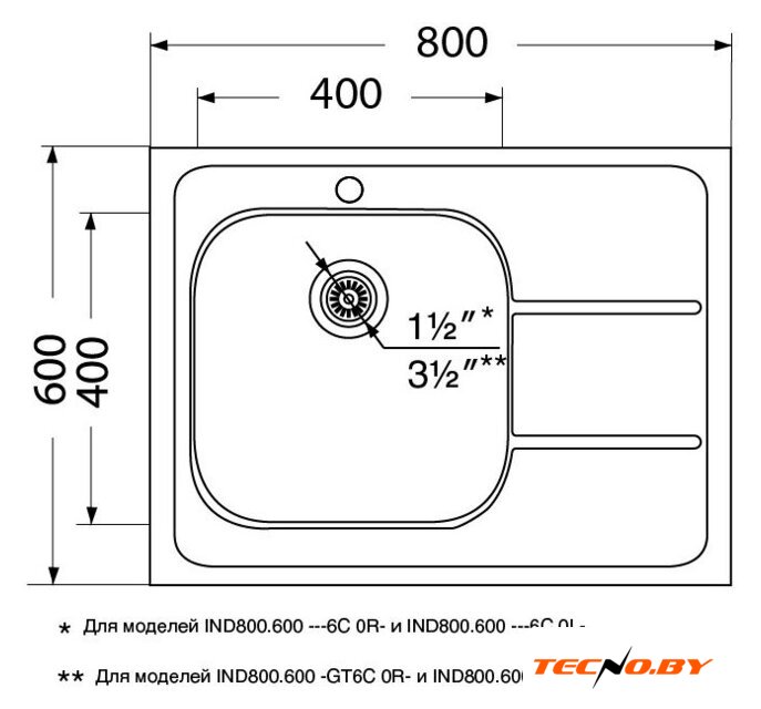 | Диаметр сливного отверстия | 1.5" |