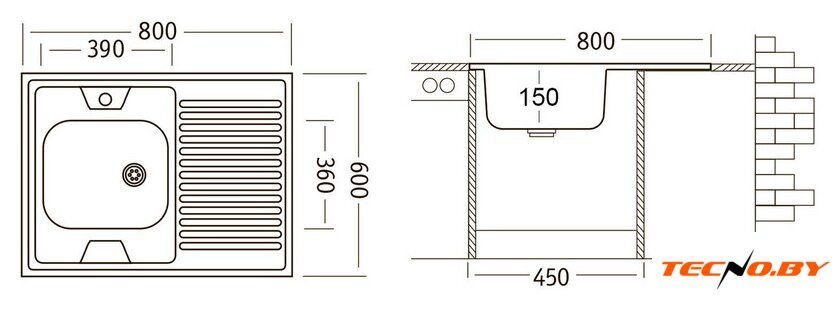 накладная, нержавеющая сталь, фактура: матовая, размеры: 80x60 см, в шкаф шириной от 80 см