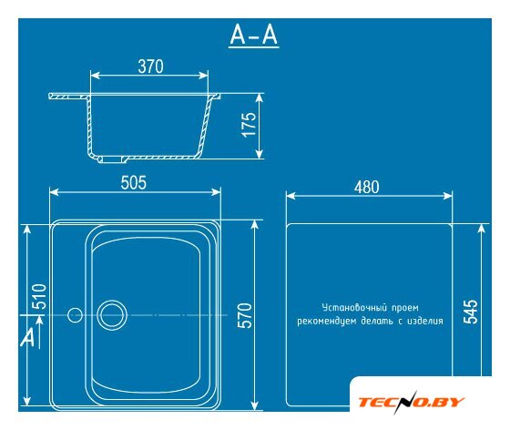 врезная на столешницу, искусственный камень, размеры: 56x49.5 см, в шкаф 60 см