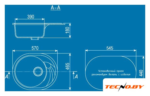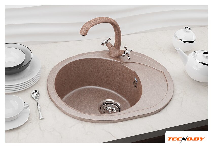 врезная на столешницу, искусственный камень, размеры: 57x46.5 см, в шкаф 45 см
