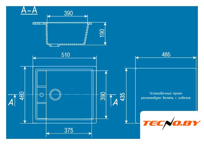 врезная на столешницу, искусственный камень, размеры: 50x59 см, глубина чаши: 19 см, в шкаф шириной от 60 см