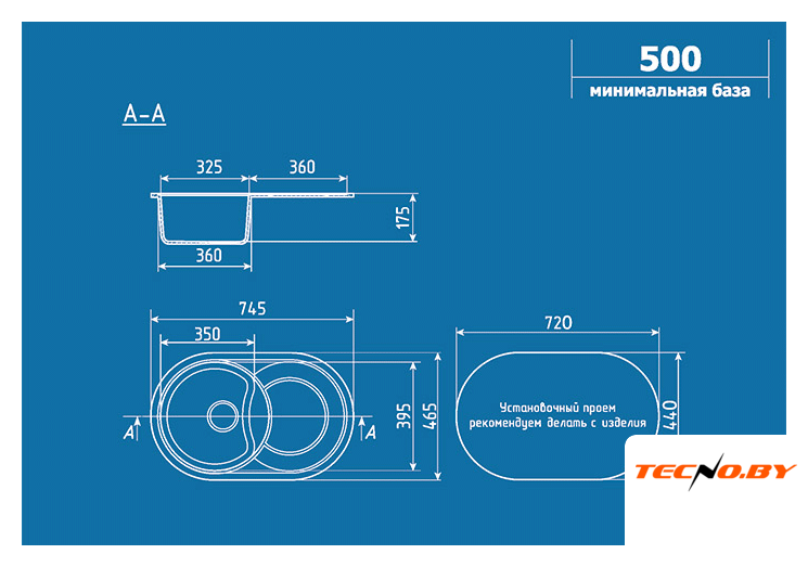 врезная на столешницу, искусственный камень, размеры: 74.5x46.5 см, в шкаф 50 см