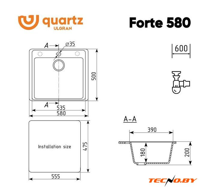 врезная под столешницу, искусственный камень, размеры: 41.5x45.5 см, глубина чаши: 18.5 см, в шкаф шириной от 50 см