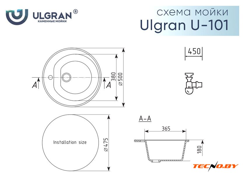 врезная на столешницу, искусственный камень, размеры: 50x50 см, глубина чаши: 18 см, в шкаф шириной от 45 см