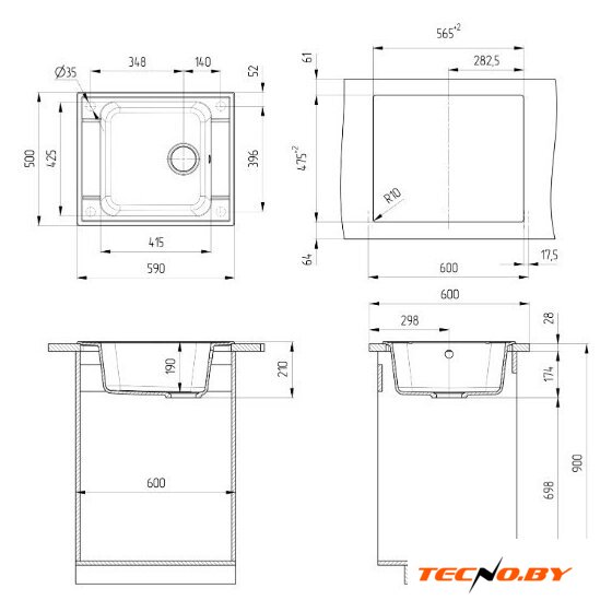 врезная на столешницу, нержавеющая сталь, фактура: сатин, размеры: 58.5x48.5 см, глубина чаши: 18 см, в шкаф шириной от 45 см