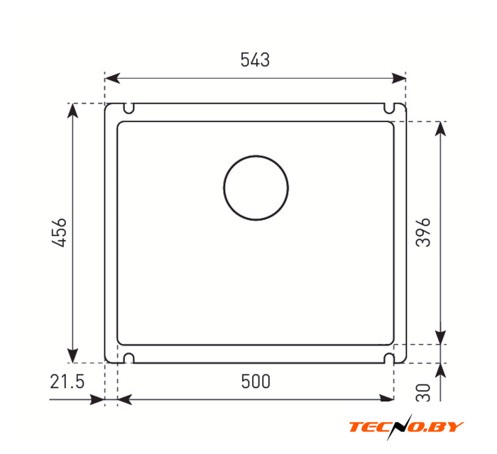 врезная под столешницу, искусственный камень, размеры: 54.3x45.6 см, в шкаф 60 см