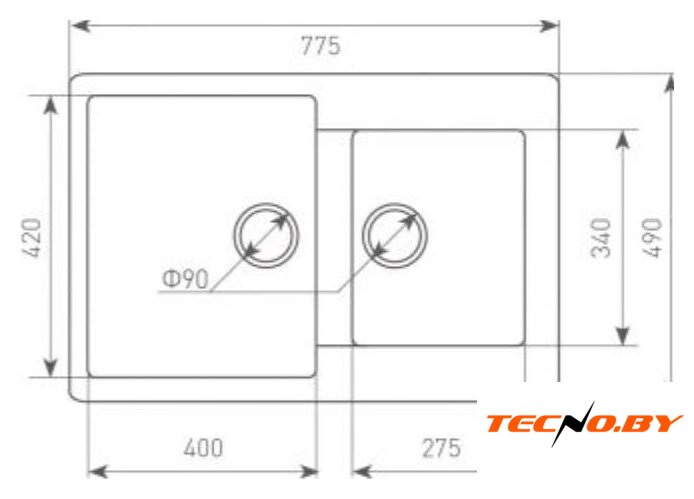 врезная на столешницу, искусственный камень, размеры: 86x50 см, глубина чаши: 20.5 см, в шкаф шириной от 90 см