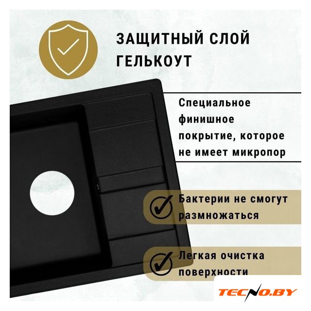 врезная на столешницу, искусственный камень, размеры: 61.5x50 см, глубина чаши: 18 см, в шкаф шириной от 40 см