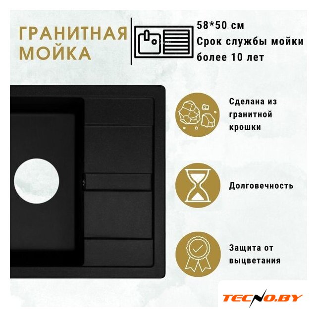 врезная на столешницу, искусственный камень, размеры: 58x49 см, в шкаф 50 см