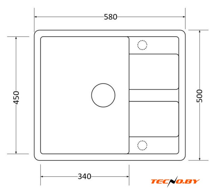 врезная на столешницу, искусственный камень, размеры: 58x49 см, в шкаф 50 см