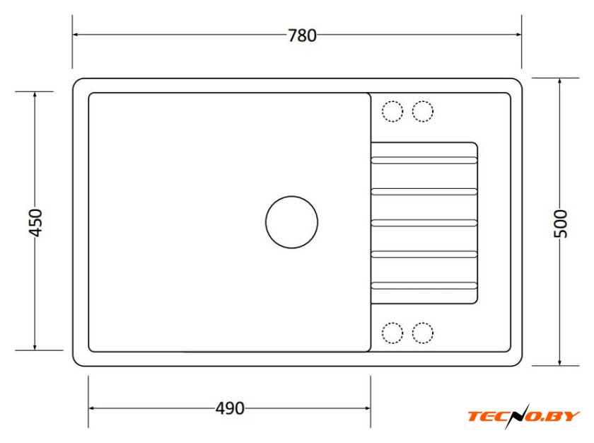 врезная на столешницу, искусственный камень, размеры: 78x50 см