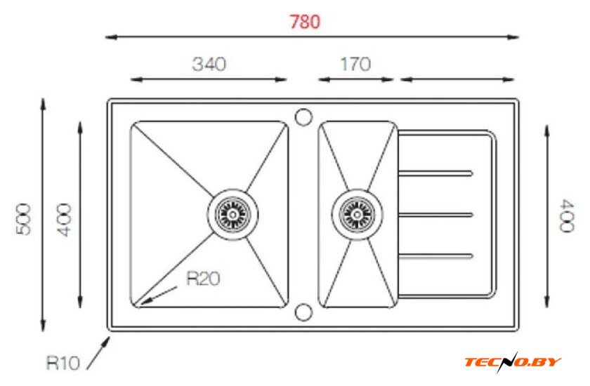 врезная на столешницу, нержавеющая сталь, фактура: матовая, размеры: 79x50 см, глубина чаши: 18 см, в шкаф шириной от 60 см