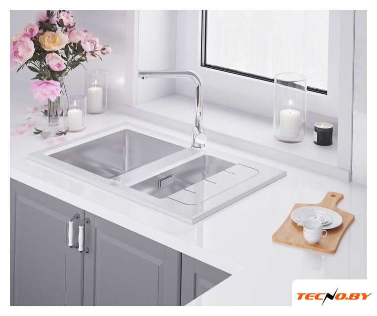 врезная на столешницу, искусственный камень, размеры: 105.7x57.5 см, глубина чаши: 21 см, в шкаф шириной от 80 см