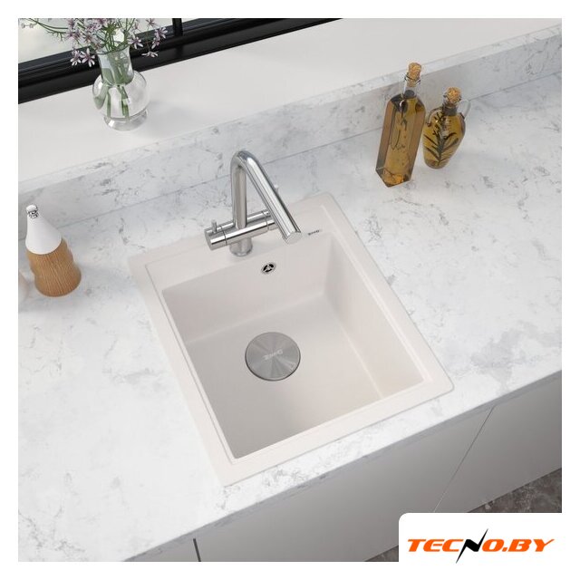 врезная под столешницу, кварц, фактура: матовая, размеры: 45x45 см, глубина чаши: 22 см, в шкаф шириной от 50 см