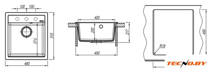 врезная на столешницу, искусственный камень, размеры: 46x51 см, в шкаф 50 см