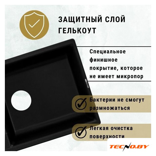 врезная на столешницу, искусственный камень, размеры: 46.5x50.5 см, глубина чаши: 21 см, в шкаф шириной от 50 см
